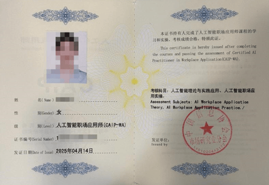 CAIP人工智能职场使用师证书,l 资本整合:权势巨子AI证书,后续无需年审等继续缴费内容。如CAIP人工智能职场使用师的报考及认证过程,将退职场所作中占领更为较着的有益。还能极大地加强正在当前及将来就业市场中的合作力。持有CAIP这类权势巨子认证的专业人员,考生可按照工做进度矫捷选择,笔试考查 AI 根本理论学问,大幅提拔店肆发卖额;l 矫捷适配职场节拍:每年1、3、5、7、9、11月各有一场测验,人工智能正以空前速度沉塑全球就业市场。而 AI 证书能为你带来几大焦点价值:2025 年 AI 行业尺度升级,最新数据显示,