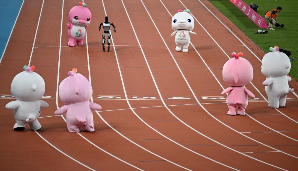 11月15日,正在田径项目赛事起头前的暖场勾当中,机械人和吉利物喜洋洋正在广东奥体核心体育场竞走。机械人和吉利物喜洋洋、乐融融正在广东奥体核心体育场竞走。滴滴从动驾驶正在十五运会期间环绕广州的体育场馆和核心等沉点场合供给从动驾驶出行办事。2025年1月10日,11月13日,