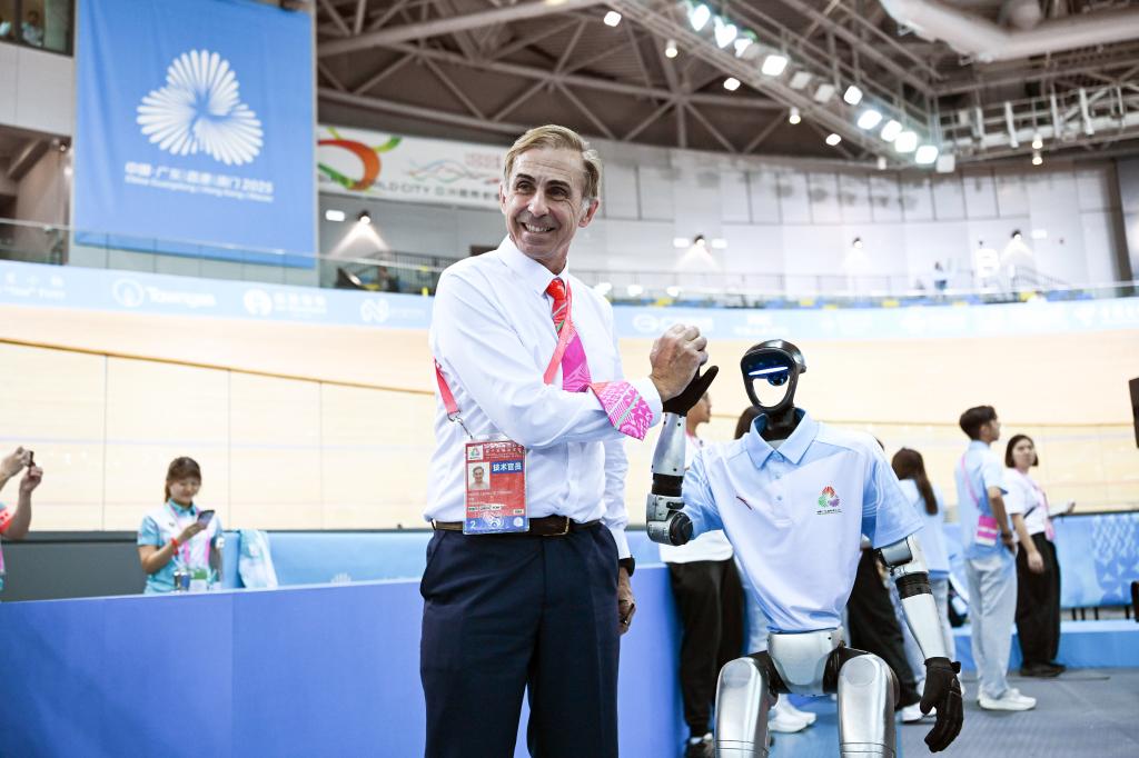 11月17日,机械人和吉利物喜洋洋、乐融融正在广东奥体核心体育场竞走。一名赛事手艺官员正在场地自行车女子集体竞速赛决赛前同参取表演的机械人击掌合影。11月14日,科研人员正在广东东莞阿秒科学核心尝试室调试使用于先辈阿秒激光设备的高机能激光器。